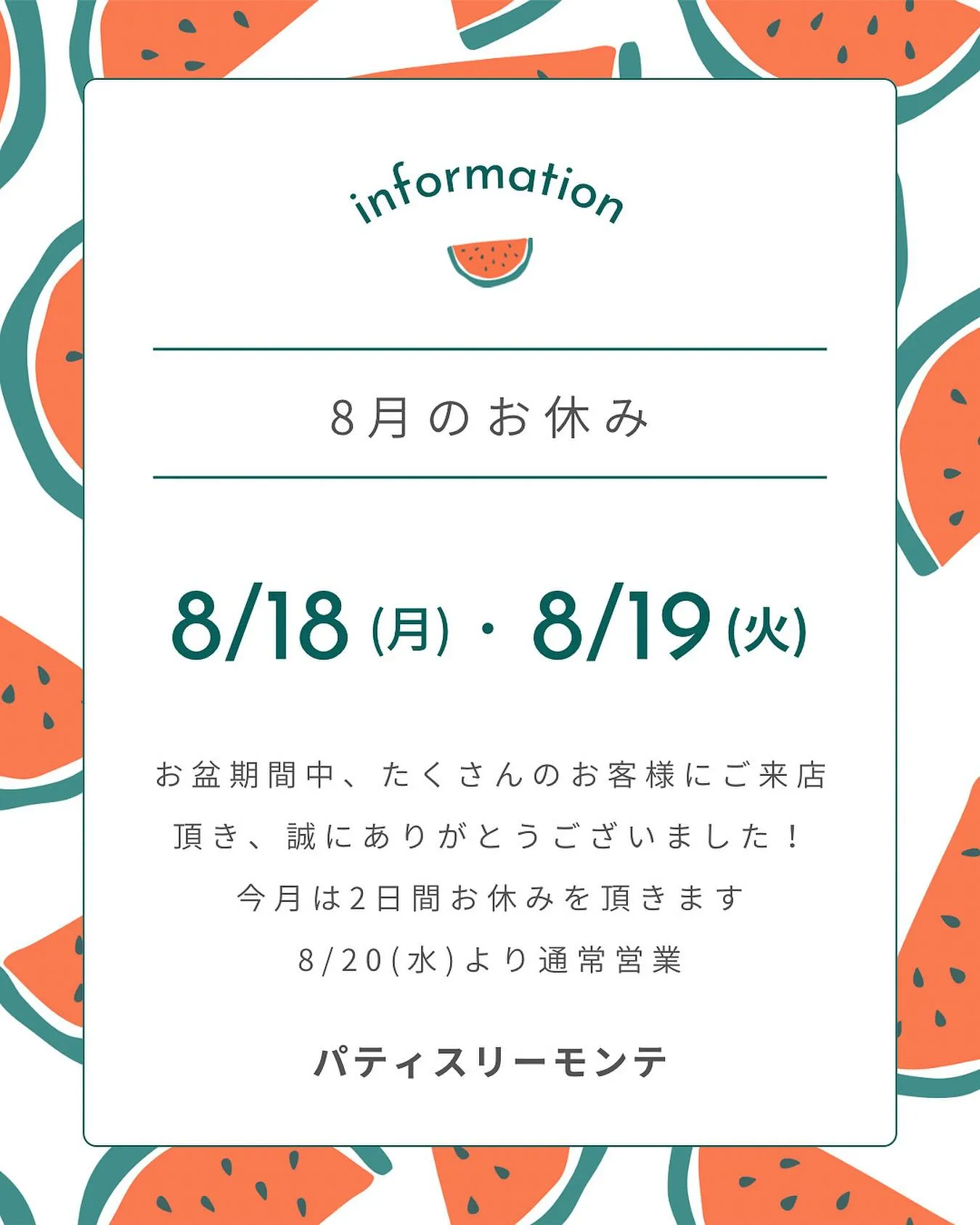 8月のお休み🌻